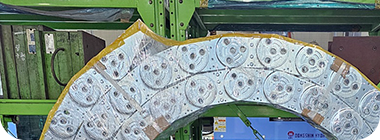 철강이나 알루미늄 코일생산 공장에서 중량물을 기어에 물려 이송 또는 에너지의 전달을 위하여 사용되고 있습니다. 또다른 개념으로 유압이나 전선케이블의 전진 또는 후진시 케이블의 보호 및 원활한 이동을 위하여 DRAG CHAIN을 사용하고 있습니다.